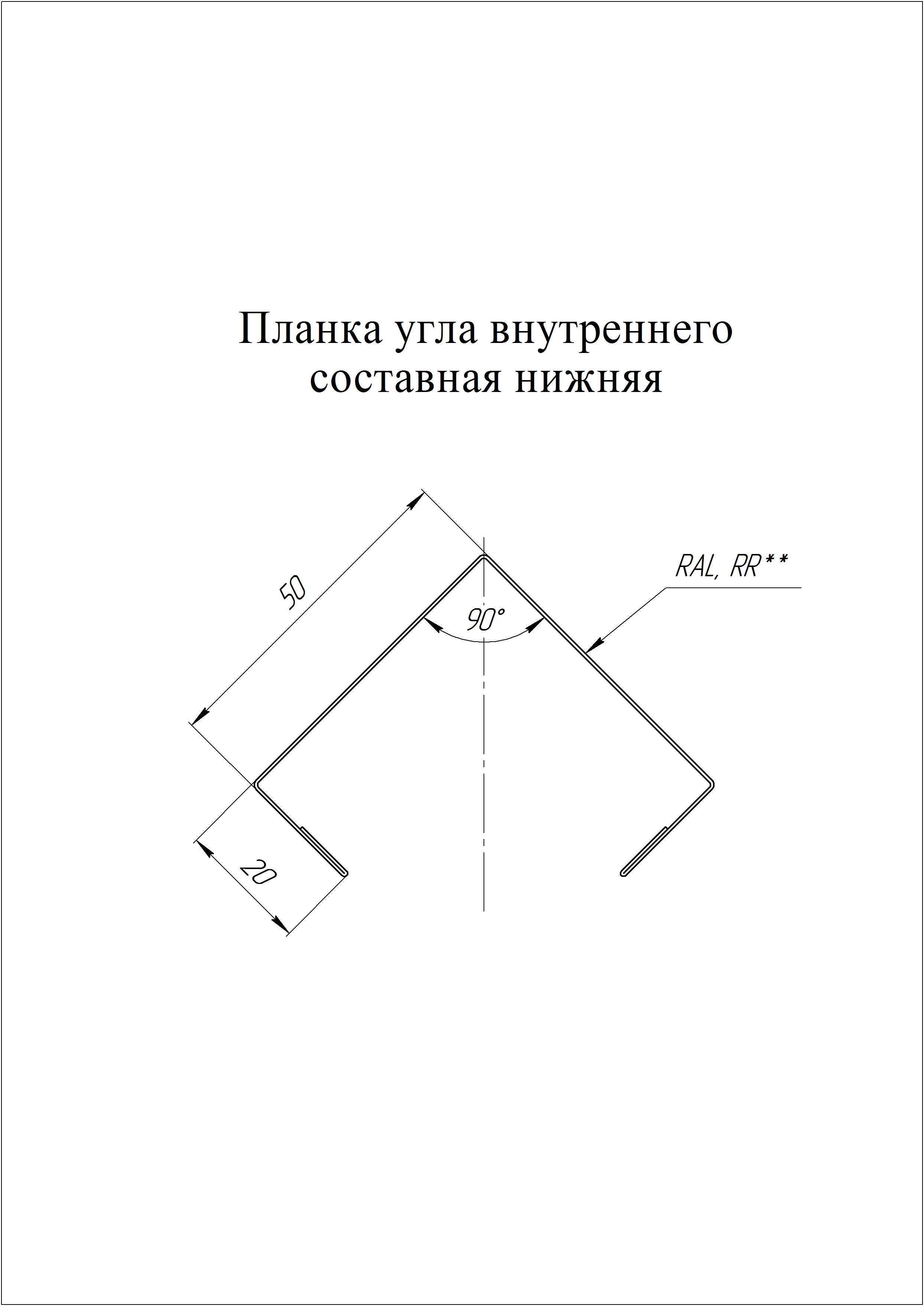 Чертеж планки конька плоского 220х50х220 мм