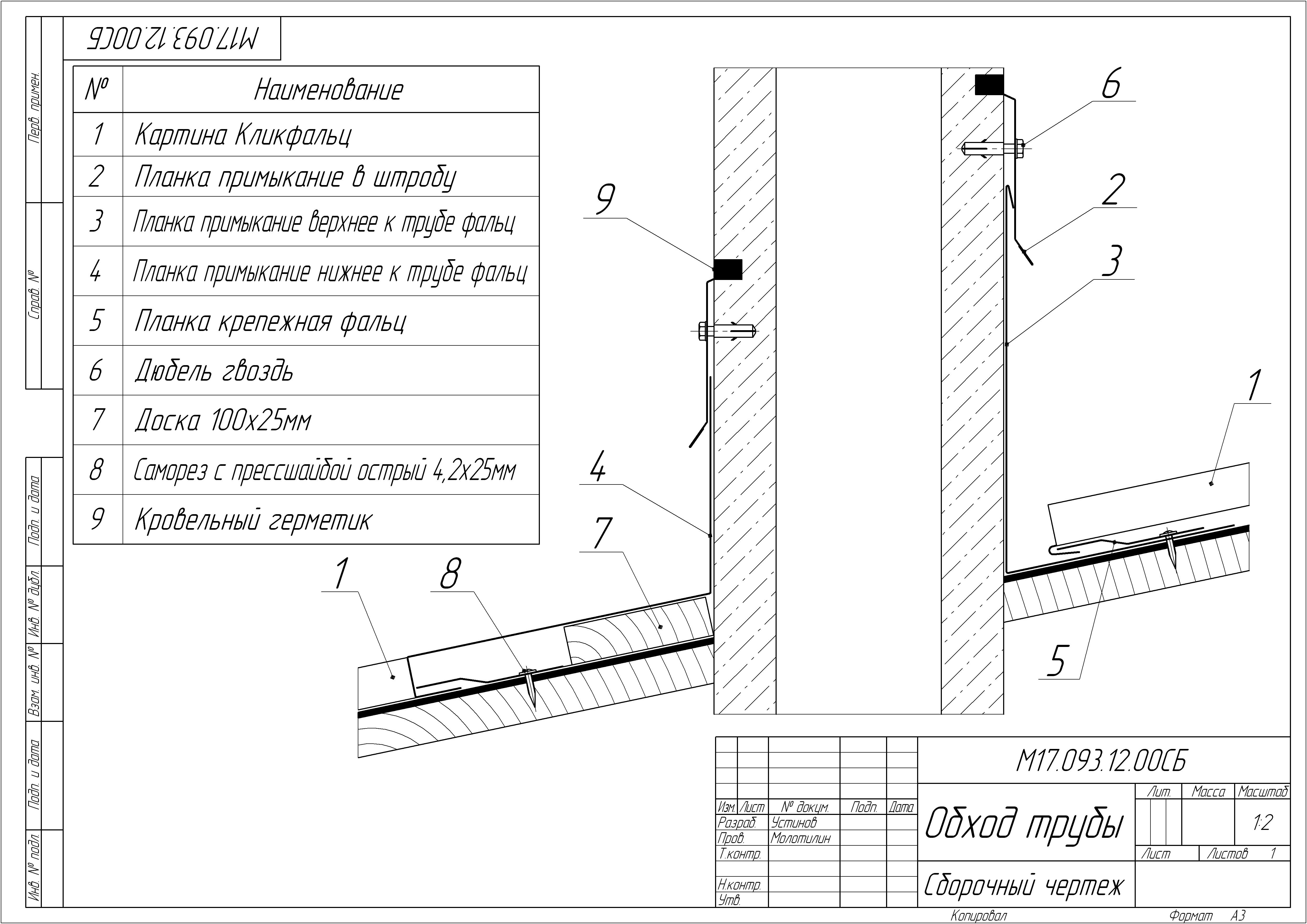 Планка примыкание верхнее к трубе фальц