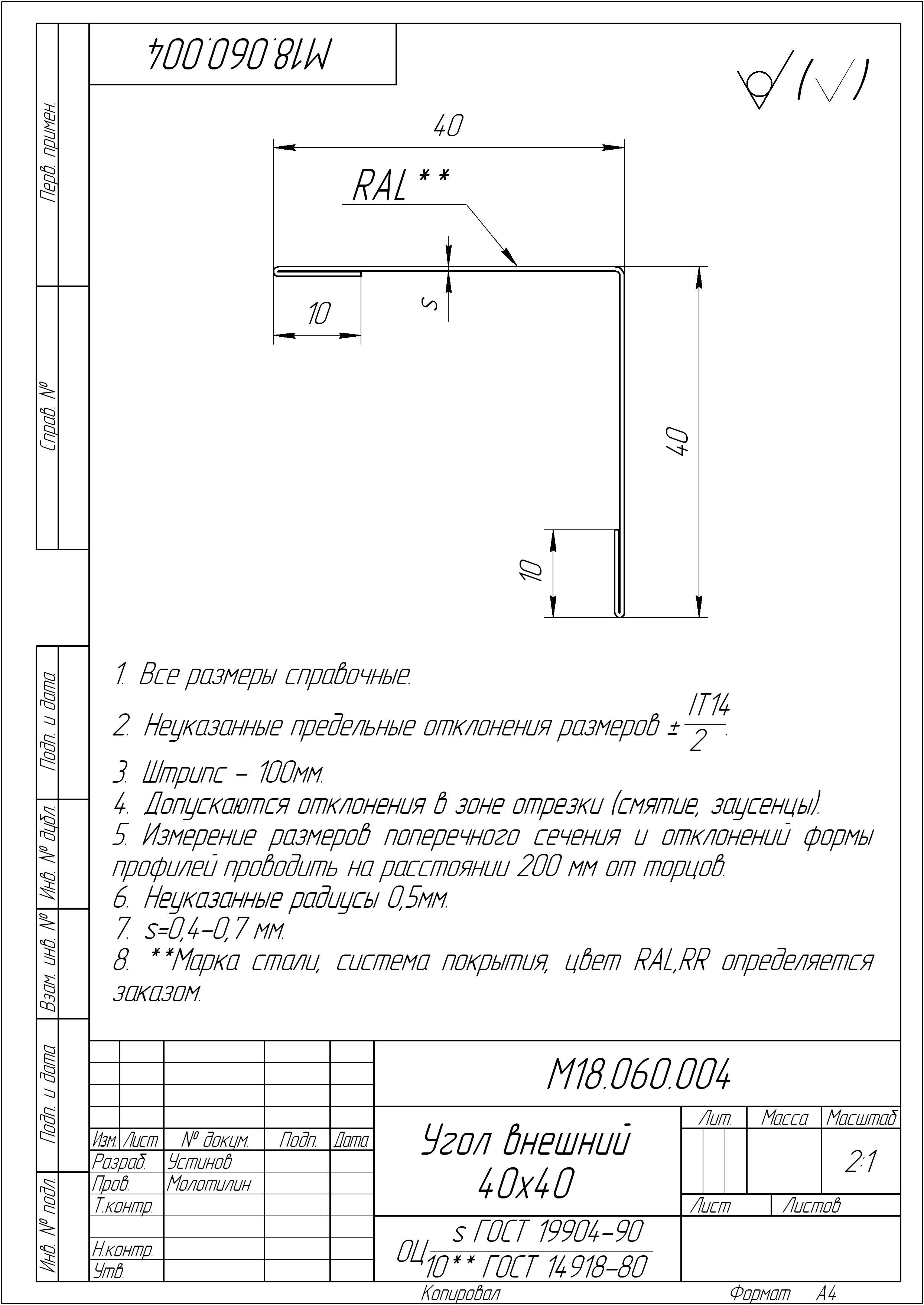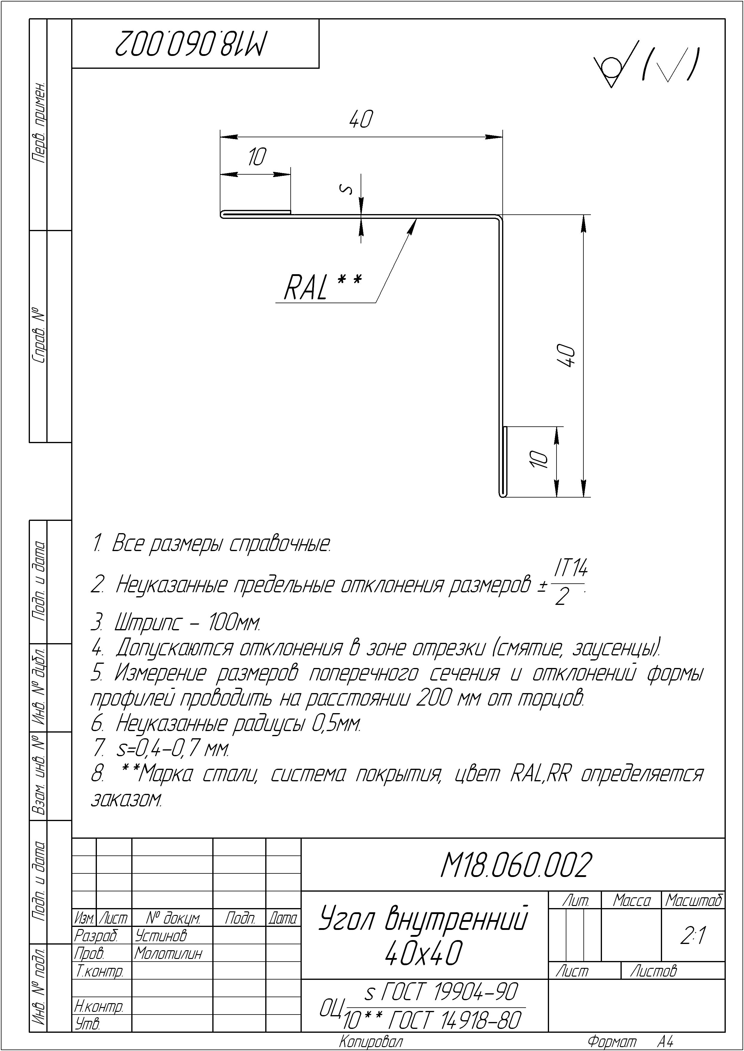 Угол внутренний Slim