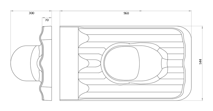Чертеж заглушка желоба универсальная ПВХ 120/90