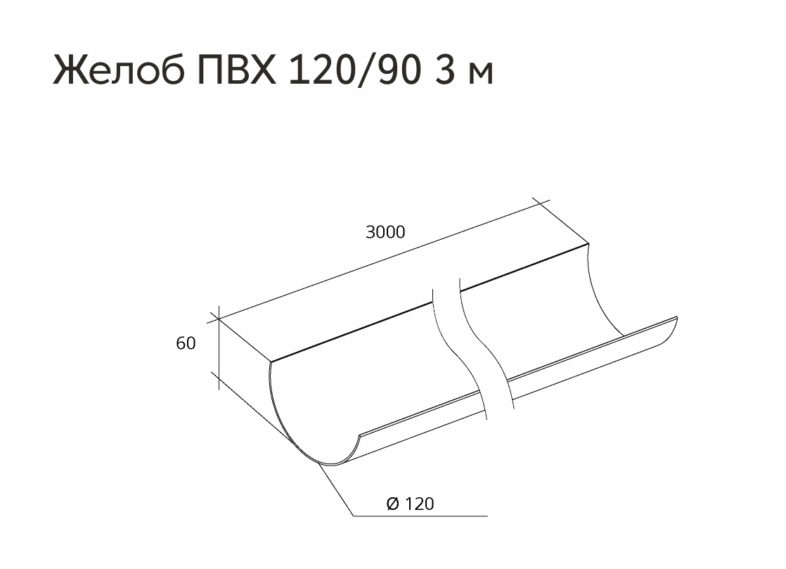 Чертеж желоб ПВХ 120/90 3 м